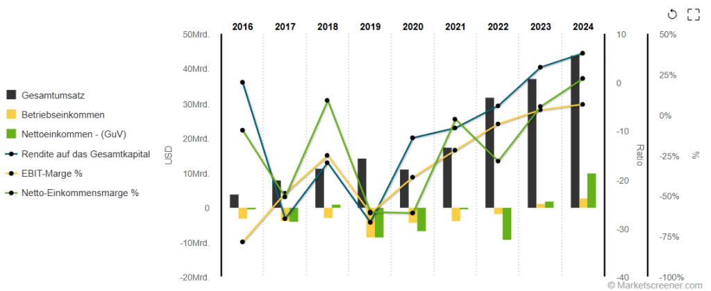 Seit 2023 schreibt Uber schwarze Zahlen. Entscheidend für die künftige Rentabilität wird sein, ob das Unternehmen effizient wachsen, operative Kosten senken und langfristige Margensteigerungen erzielen kann.