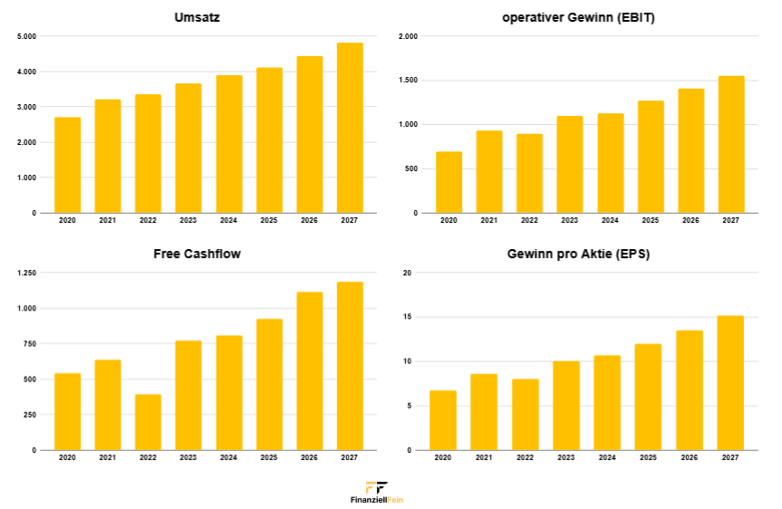 EPS und DPS: Eine Dividende schüttet IDEXX nicht aus. Die Entwicklung des Gewinns pro Aktie (EPS) habe ich den aktuellen Analystenschätzungen entnommen.