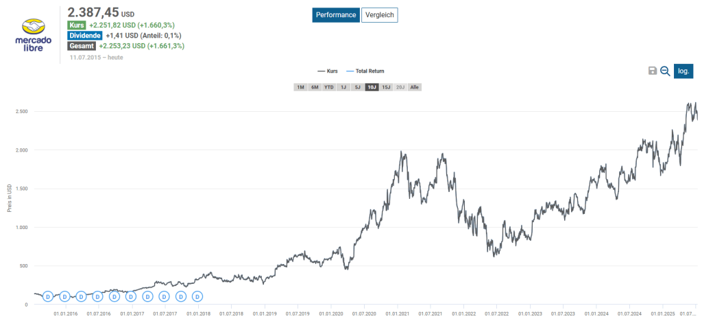 Für Dividendenliebhaber ist MercadoLibre bislang kein Kandidat für regelmäßige Ausschüttungen. Die Reinvestition aller Gewinne in Wachstum ist strategisch zwar nachvollziehbar, aber aus Sicht des passiven Einkommens ernüchternd. Wer hier investiert, setzt auf Kursgewinne, nicht Cashflows.