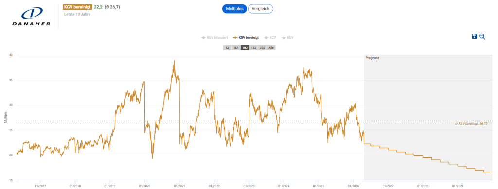 - Multiples-Kompression: Danaher notiert aktuell so günstig wie seit Jahren nicht mehr.